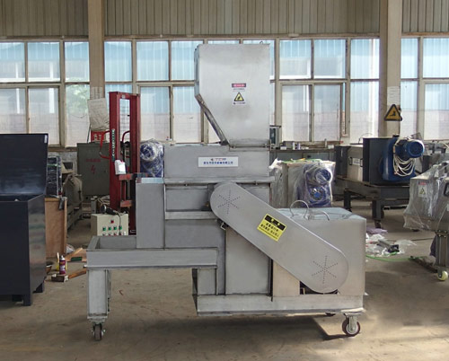 2、針對(duì)長(zhǎng)纖維物料全自動(dòng)輸送帶壓輥進(jìn)料,壓輥可根據(jù)物料的厚度自動(dòng)升降,出料螺旋輸送。特別適合大批量作業(yè),可以抓車、鏟車上料。