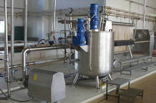 其中硅藻土過濾機(圓盤式或者板框式)為澄清過濾設(shè)備,以硅藻土等為助濾劑,以紙板(200×200板框)或者不銹鋼濾網(wǎng)(圓盤式)為支撐板,可以對各種酒、飲料、食品、醫(yī)藥、化工等行業(yè)的液態(tài)制品進行澄清過濾。能使1~5μm以上直徑的菌體及固體微粒100%截留,并可保留原液的特性。