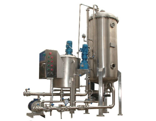 過(guò)濾時(shí),首先在過(guò)濾盤上形成硅藻土預(yù)涂層。被過(guò)濾的液體經(jīng)硅藻土預(yù)涂層時(shí),其中的雜質(zhì)即被阻擋;而純靜的液體經(jīng)過(guò)微觀管狀或片狀的間隙以及顆粒之間的間隙通過(guò)過(guò)濾層,從而起到過(guò)濾作用。隨過(guò)濾時(shí)間的推移,在預(yù)涂層上被濾掉的雜質(zhì)會(huì)越來(lái)越多,且將阻塞過(guò)濾通道。因此在過(guò)濾過(guò)程中,還需對(duì)進(jìn)入過(guò)濾罐的被過(guò)濾的液體,添加一定劑量相應(yīng)粒度的硅藻土,以維持正常的過(guò)濾過(guò)程。另外,如果過(guò)濾時(shí)需要脫色,還需加入一定比例的活性炭。